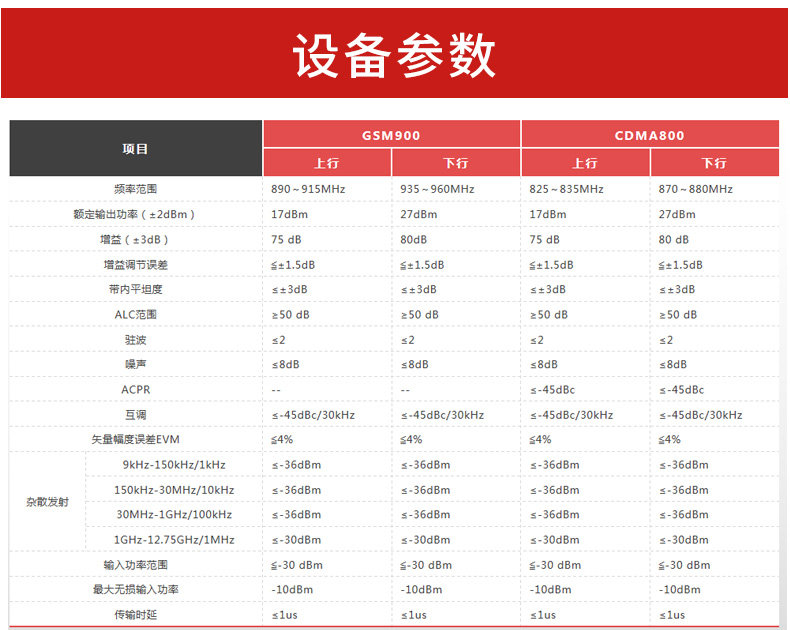 CDMA 800: 825-835MHz/870-880MHz(上行/下行)