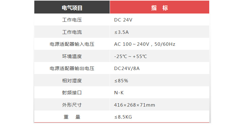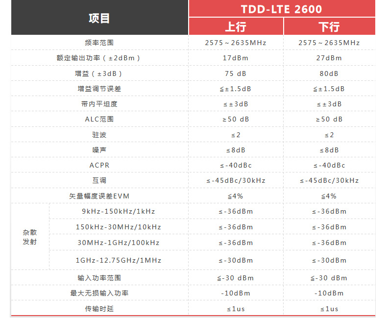 增益調(diào)節(jié)誤差:增益在0~20dB時(shí),誤差≤1dB;增益在21~25dB時(shí),誤差≤1.5dB