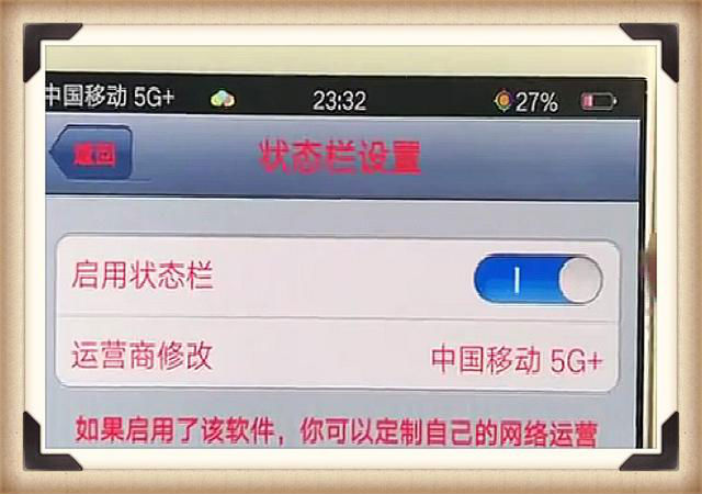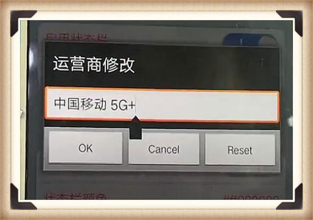 接著我們點(diǎn)擊運(yùn)營(yíng)商修改,在這里你可以自定義文字,比如我們?cè)谶@里輸入“中國(guó)移動(dòng)5G”,中間空格一下,效果會(huì)更加的逼真哦。設(shè)置完成后,屏幕上方就會(huì)出現(xiàn)5G新號(hào)的效果啦。