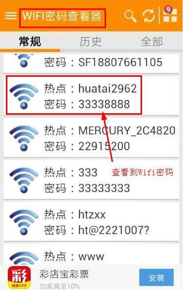 圖 6:在手機上的Wifi密碼查看器上查看到已連接的Wifi熱點的密碼